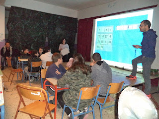 Αρχικά τυπώσαμε την αφίσα που φαίνεται αριστερά και με την οποία ενημερώσαμε τους μαθητές. Στη συνέχεια περάσαμε από τις τάξεις και συγκεντρώσαμε τις συμμετοχές. To ενθαρρυντικό ήταν ότι η συμμετοχή ήταν μεγάλη από όλα τα τμήματα. Χωρίσαμε τους μαθητές κάθε τάξης σε 4 ομάδες.Φροντίσαμε σε κάθε ομάδα να υπάρχουν μαθητές διαφορετικών βαθμολογικών ικανοτήτων. Αναρτήσαμε στον πίνακα ανακοινώσεων του σχολείου τα ονόματα των παιδιών ανά ομάδα και τάξη. Προμηθευτήκαμε κουδουνάκια για γρήγορη απάντηση και έναν μικρό πίνακα με μαρκαδόρους και σφουγγάρι για την καταχώριση της βαθμολογίας. Τυπώσαμε επαίνους για κάθε μέλος από τις νικήτριες ομάδες και προμηθευτήκαμε λογοτεχνικά βιβλία για δώρα στους νικητές.