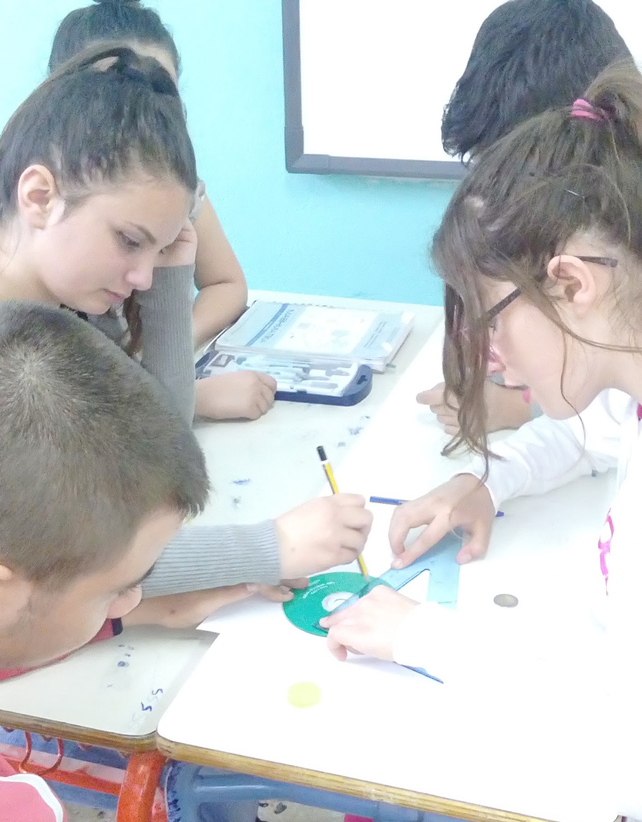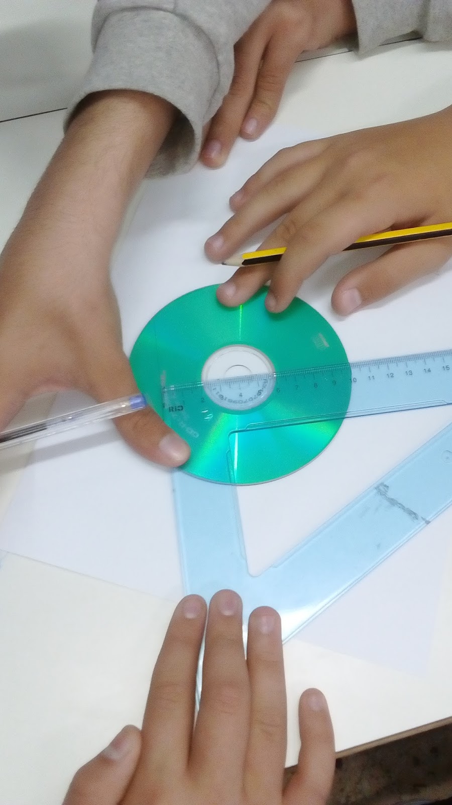 Πορεία δραστηριότητας:.Σε κάθε ομάδα δόθηκε από ένα αντικείμενο κυκλικού σχήματος. Επιλέχθηκαν ένα CD ηλεκτρονικού υπολογιστή , ένα δίευρο κι ένα πλαστικό καπάκι από μπουκαλάκι νερού. Τα υλικά της πειραματικής δράσης ήταν τα παρακάτω :