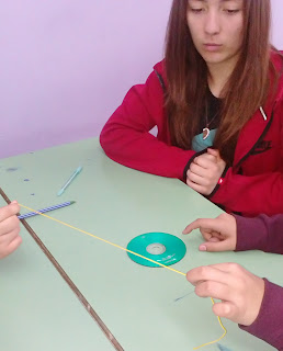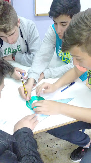 Αρχικά έπρεπε να μετρήσουμε το μήκος κάθε κυκλικού αντικειμένου. Για το σκοπό αυτό χρησιμοποιήσαμε το κίτρινο σχοινάκι που το τυλίξαμε περιμετρικά γύρω από το κυκλικό αντικείμενο. Μετά ανοίγοντας το σχοινάκι ώστε να τεντωθεί , μετρήσαμε το μήκος του με τον χάρακα , το οποίο αντιστοιχεί στο μήκος του κύκλου. Καταγράψαμε την τιμή αυτή του μήκους.