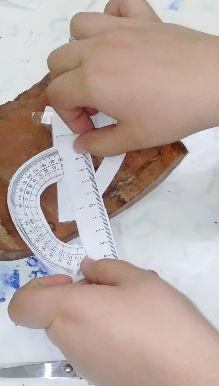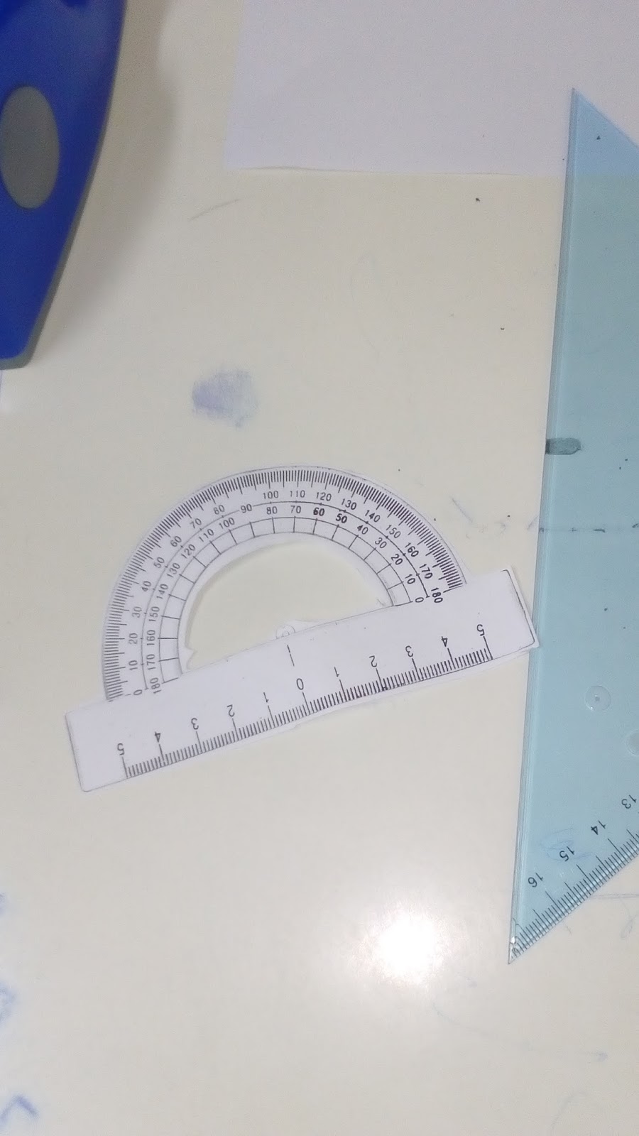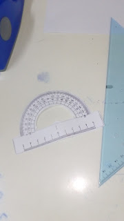 Κόψαμε περιμετρικά το περίγραμμα ενός μοιρογνωμονίου από μια φωτοτυπία του. Με τη βοήθεια αυτού του «εύκαμπτου» μοιρογνωμονίου μετρήσαμε τις γωνίες του τριγώνου και τις βρήκαμε ίσες αντίστοιχα με 80 , 70 , 70 μοίρες. Το άθροισμα τους λοιπόν ισούται με 220 μοίρες , είναι δηλαδή μεγαλύτερο από δύο ορθές. Στην ελλειπτική αυτή γεωμετρία του Ρίμαν στηρίχτηκε η γενική θεωρία σχετικότητας του Αϊστάιν καθώς η γη καμπυλώνει το χωροχρόνο και το σύμπαν υπακούει σε αυτήν την γεωμετρία.