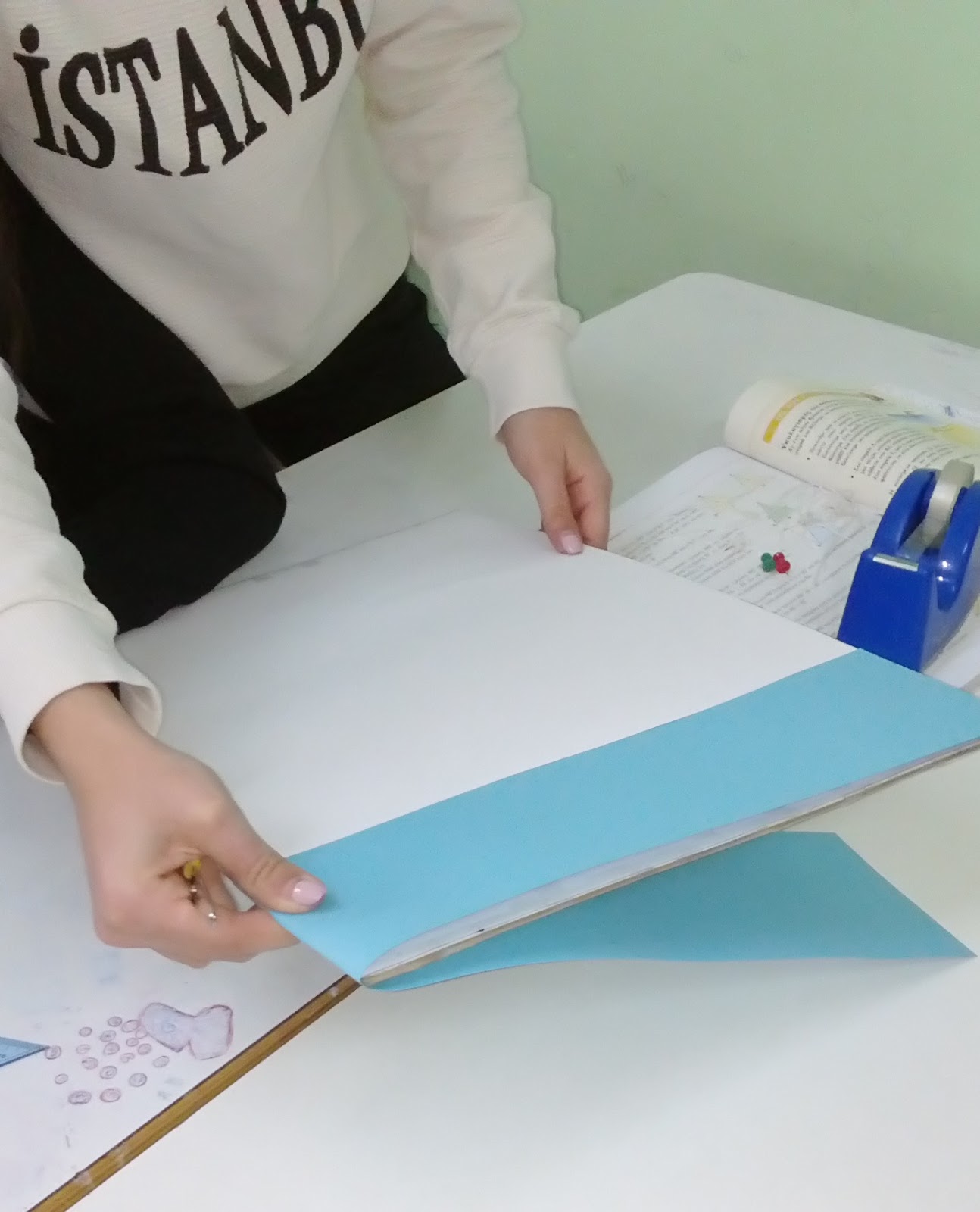 Την κατασκευή την κρεμάσαμε με τη βοήθεια ενός καρφιού στον τοίχο της τάξης.